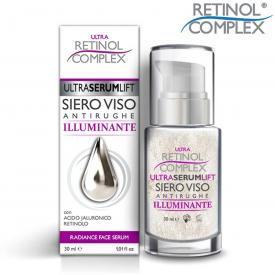 Un Siero Illuminante, antiossidante ed idratante, con Acido Jaluronico e Retinolo da utilizzare su viso e décolleté, ideale per illuminare diffusamente l'incarnato e idratarlo a fondo.