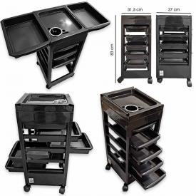 Carrello professionale per parrucchiere con 5 scomparti di colore nero. Ruote incluse. Misure: 31,5 x 37 x 83 cm
