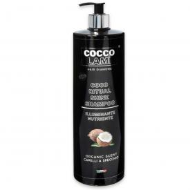 Shampoo Illuminante e nutriente. Deterge il capello e idrata in profondità la fibra capillare; Grazie agli ingredienti in esso contenuti e all'azione dell'Acqua di Cocco dona luminosità e prolunga l'effetto specchio ottenuto dal trattamento di laminazione usato come mantenimento. Può essere utilizzato anche da solo o come prmo passo per un trattamento completo in abbinamento a Coco Ritual Shine Mask e Laminazione istantanea Coccolamì.