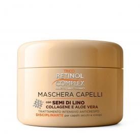 La Maschera Capelli Anticrespo Retinol Complex® è un trattamento intensivo formulato per nutrire e disciplinare i capelli crespi, secchi o difficili da gestire. La sua formula avanzata unisce Semi di Lino, Collagene e Aloe Vera in una sinergia riequilibrante che migliora la struttura della fibra capillare, ripristina morbidezza e lascia i capelli più elastici e luminosi fin dal primo utilizzo.